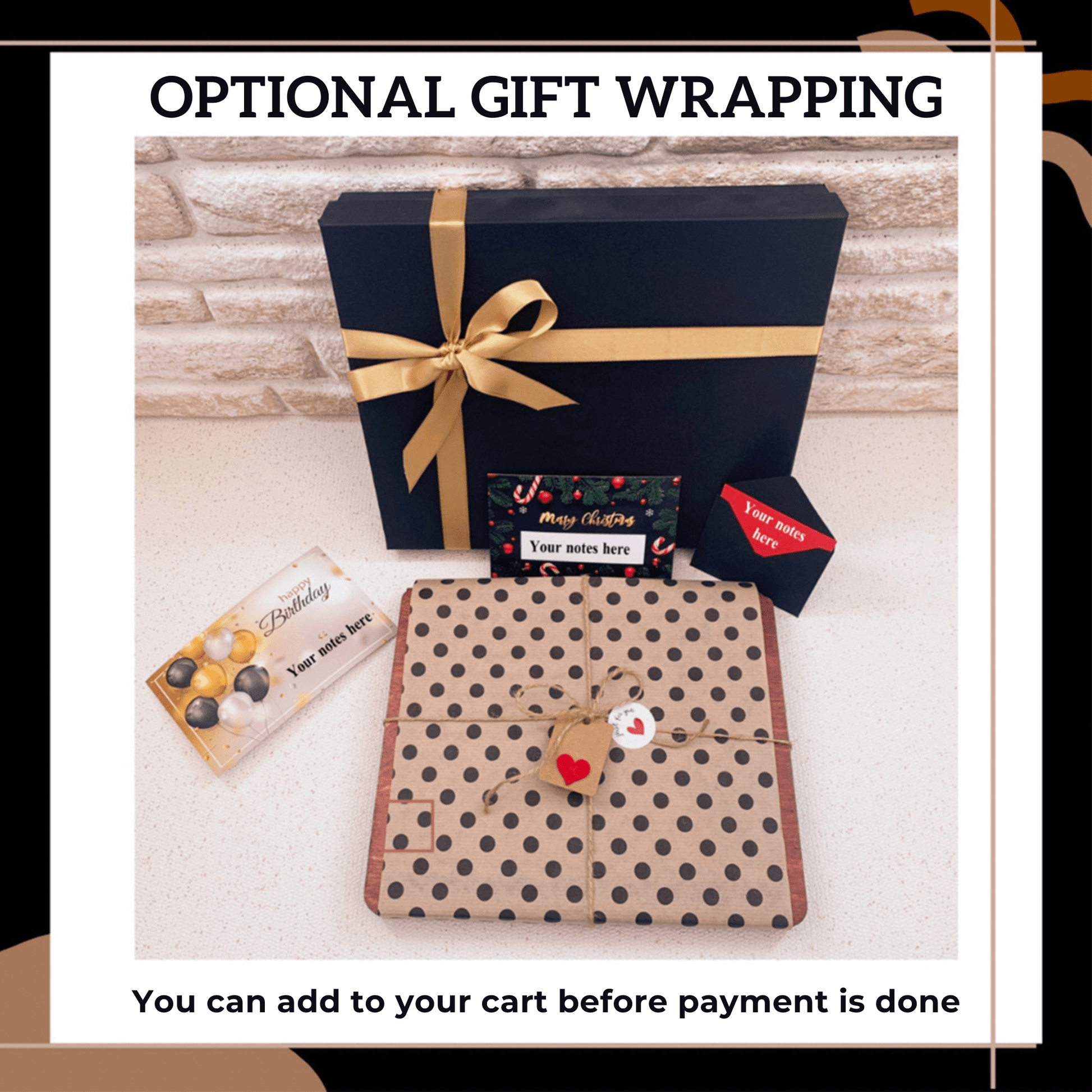 Select optional gift wrapping and add to your cart to and make your loved one feel so special. Write your gift notes to personalization box.