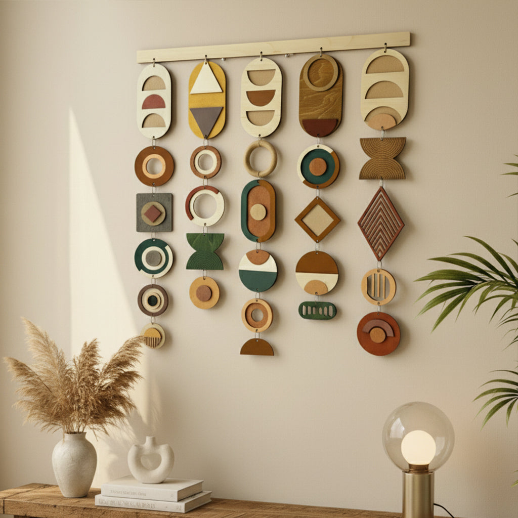 modern geometric wall art; wooden wall hanging; birch plywood wall decor; boho wall decor; mid century modern wall art; scandi neutral decor; vertical wall hanging; living room wall art; entryway wall decor; handmade wall art; modular wall art set; large wall hanging